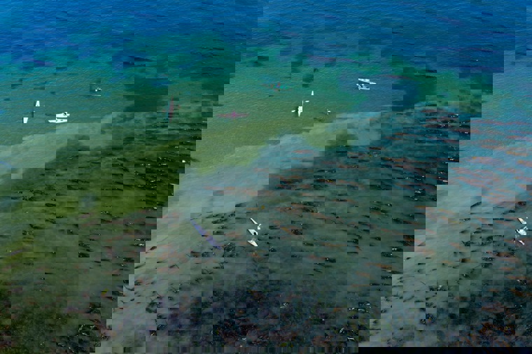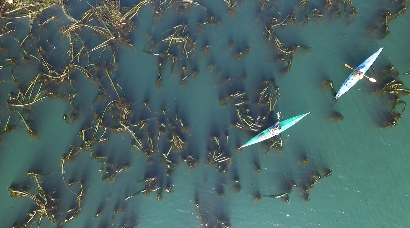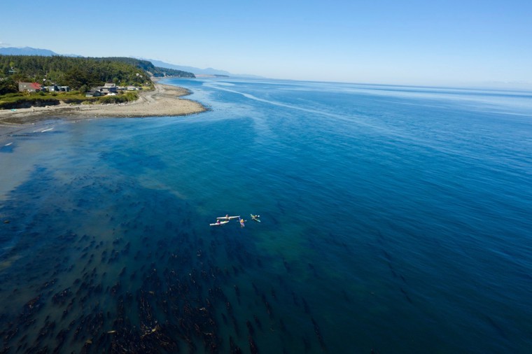 Drone photos of Jefferson MRC kayak-based kelp surveys by Tyler Cowdrey, DNR