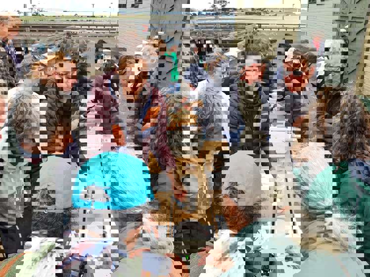 Emily Buckner with Puget Sound Restoration Fund leading a live larval crab monitoring demonstration