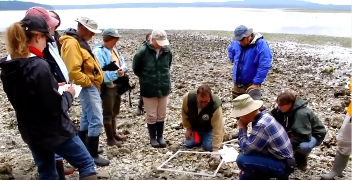 The MRC has been working for over 10 years to protect the Discovery Bay population and restore Olympia oysters to local waters. In the early years, our work included surveys, education outreach, and monitoring studies in Discovery Bay. In 2006, the MRC began monitoring the population in Discovery Bay, recording information about geographic location, estimated numbers of individuals, size distribution, age, and larval settlement.